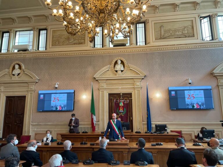 Questo l’intervento del sindaco – “Quest’anno, finalmente, celebriamo il 25 aprile senza restrizioni, visto il superamento dell’emergenza sanitaria. Dopo due anni di limitazioni per la pandemia possiamo e vogliamo ricordare con eventi e cerimonie una data decisiva per la pace del popolo italiano e per il ritorno ad una vita degna di essere vissuta in un Paese libero e democratico.