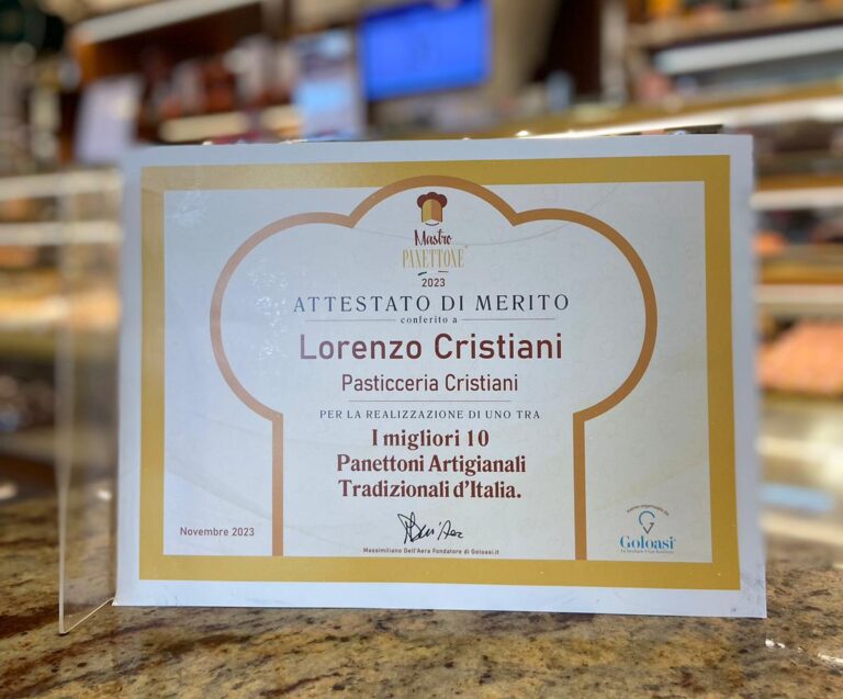 Il pasticcere livornese della Pasticceria Cristiani, Lorenzo Cristiani, conquista il sesto posto, nella categoria Panettone Tradizionale, al concorso Mastro Panettone e migliora il piazzamento, nella top 30, dello scorso anno: "Ringrazio tutta la mia famiglia e tutto lo staff della pasticceria che mi ha permesso durante l'anno di dedicarmi a questo impegno"