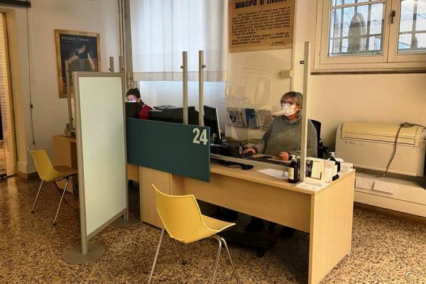 Nei rinnovati locali al piano terra del Palazzo Comunale hanno trovato spazio una sala di attesa e un ambiente con cinque sportelli al pubblico, organizzati in modo da garantire la privacy alle persone che vi accedono, di cui uno dedicato alle pratiche da svolgere nella lingua dei segni e uno per l’edilizia privata.