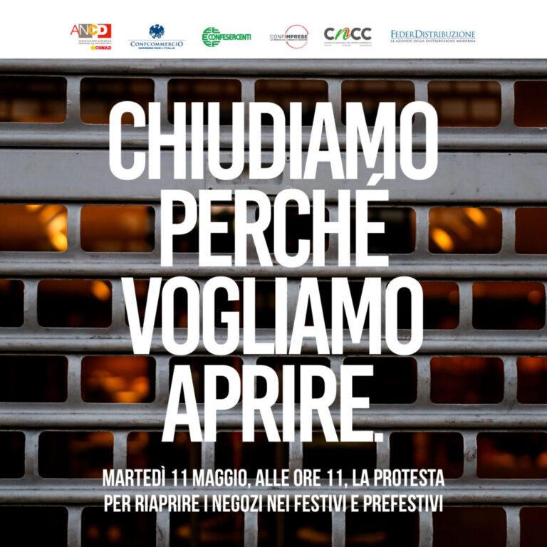 Comunicato congiunto di ANCD-Conad, Confcommercio, Confesercenti, Confimprese, CNCC–Consiglio Nazionale dei Centri Commerciali e Federdistribuzione. La protesta per chiedere la riapertura immediata nei weekend