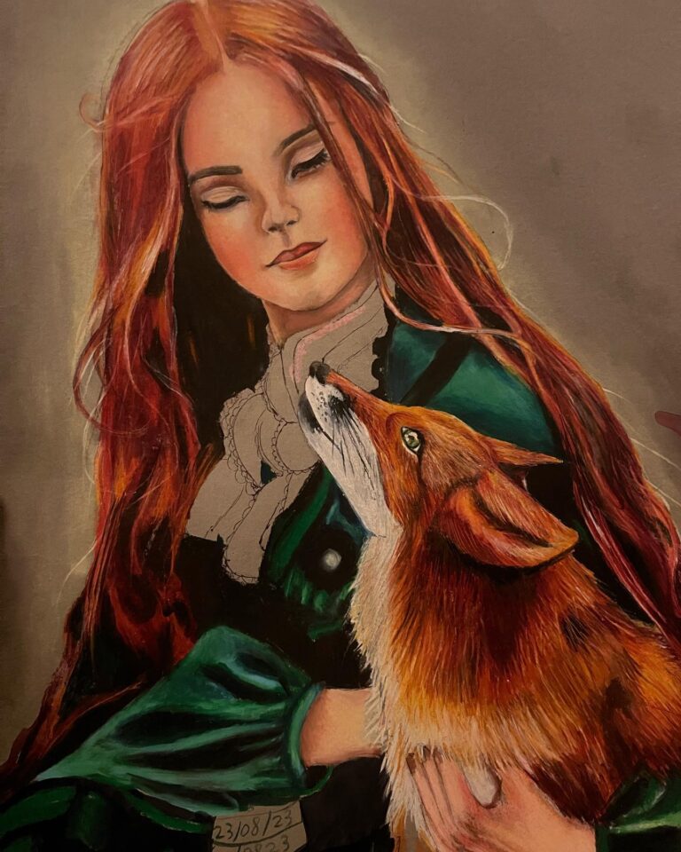 Mia disegna e dipinge dall'età di 11 anni per se stessa solo quando ha ispirazione o voglia e così dopo la pausa dovuta agli esami di terza media quest'estate ha ripreso matita e colori. E uno dei 5 disegni realizzati è "ancora da finire ma dal vivo è ipnotico"