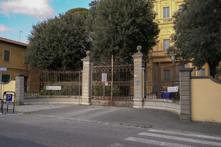 Uno dei 5 attraversamenti rialzati sarà realizzato davanti al cancello di Villa Mimbelli