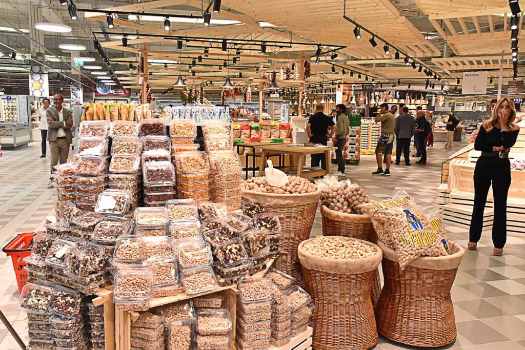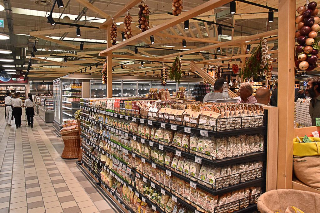 4.500 mq di area vendita – Di questi 4.500 mq, 600 mq sono dedicati al no food di servizio, legato alle esigenze quotidiane (piccoli elettrodomestici, tessile casa, cucina, cancelleria, ecc) a cui si aggiungono l’ottica e la telefonia. La nuova coop è caratterizzata dalla grande presenza dei prodotti freschi e freschissimi (disposti in sei isole all’ingresso dell’area vendita). In un mondo dove l’e-commerce sta ormai prendendo il sopravvento, la tradizione viene esaltata e risaltata. I sapori dei gusti livornesi e toscani (frutta e verdura, pesce, carne, gastronomia, panetteria/pizzeria/ pasticceria) sono i principali protagonisti a cui poi si aggiungono tutti gli altri prodotti alimentari e no food. Al centro la valorizzazione dei prodotti toscani e livornesi per rafforzare il legame con il territorio. Alcuni esempi: la produzione interna di pane, schiacce, pizze, torte ecc con l’uso esclusivo di farine da grano toscano; un tipo di formaggio interamente prodotto con latte della Val di Cornia nel Caseificio geotermico S.Martino di Monterotondo M.Mo che utilizza fonti geotermiche nei processi produttivi; il prosciutto Bazzone della Garfagnana e della Valle del Serchio (Presidio Slow Food) e il prosciutto di San Galgano (Chiusdino); il Bovino di Maremma nato, allevato e macellato in loco; il Suino e il Pollo Toscano; le acciughe pescate nel mare tra Piombino e Livorno e consegnate nella prima mattinata alla pescheria del punto vendita; le Orate di Capraia; la frutta e la verdura della Val di Cornia e del territorio toscano. Il rispetto ambientale è ad esempio riconoscibile nell’illuminazione a Led di tutto il punto vendita e nella chiusura dei banchi frigo per il risparmio energetico. Importante la presenza di prodotti Etnici, Etici e per gli animali domestici. Presente inoltre anche un adeguato assortimento di prodotti confezionati e industriali indispensabili per la spesa quotidiana.