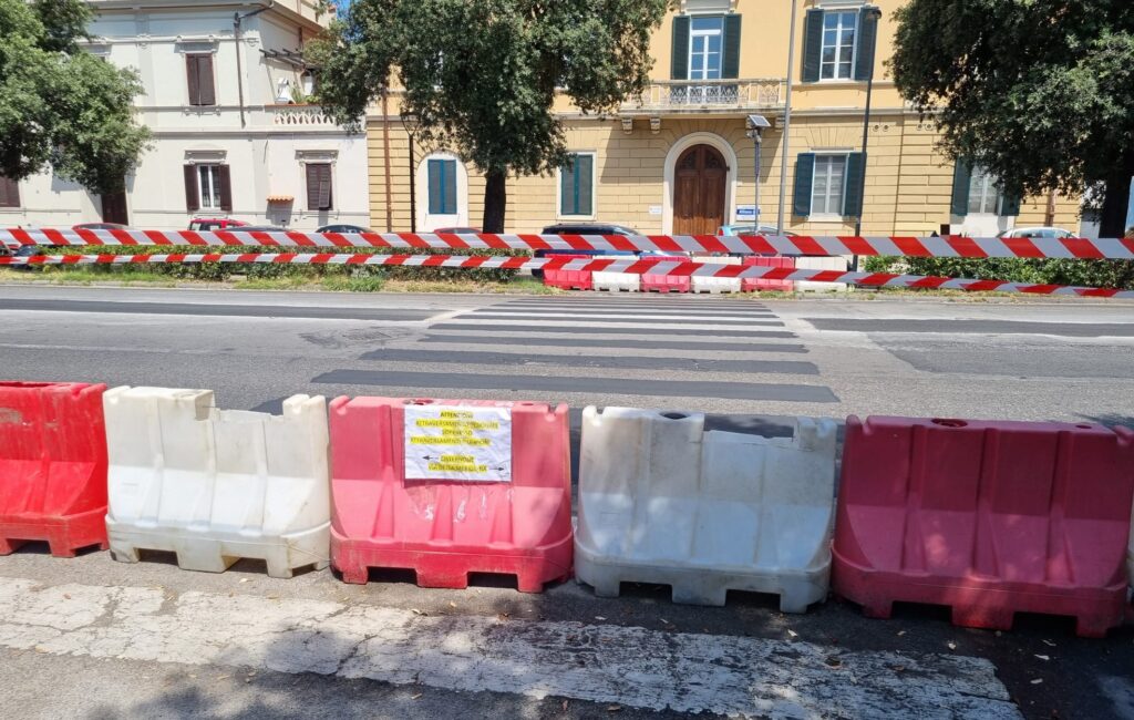 Ai pedoni è richiesto di sopportare il disagio di dover arrivare fino agli attraversamenti posti alle due estremità del cantiere: il passaggio pedonale di viale Alfieri/Nievo e quello al semaforo via Galilei/Cisternone. Come detto prima, si tratta di provvedimenti prescritti dalla normativa e assolutamente necessari per garantire l’incolumità dei pedoni.