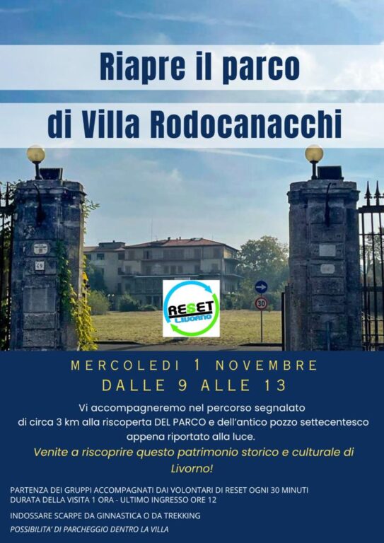 Nuova camminata nel parco di villa Rodocanacchi il 1 novembre dalle 9 alle 13. I volontari di Reset Livorno vi accompagneranno nel percorso di circa 3 km. La camminata include anche il pozzo del 700’ appena ripulito. Possibilità di parcheggio dentro la villa. Si consiglia abbigliamento comodo.