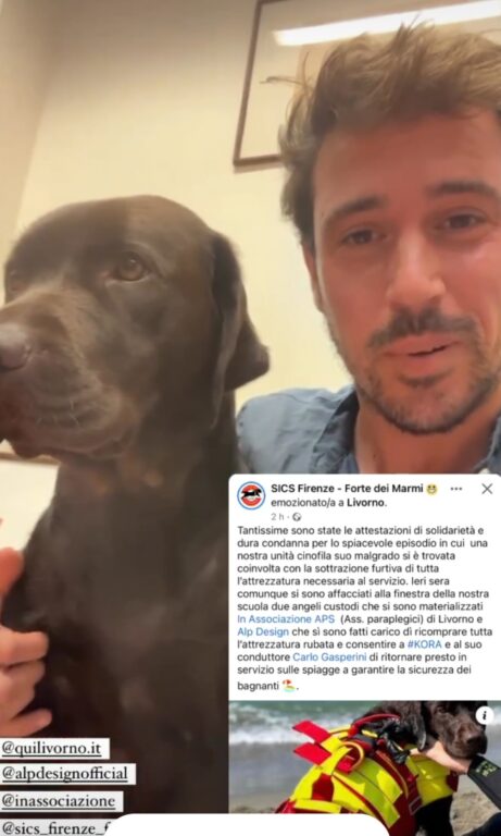 All’indomani del nostro articolo la notizia è che l’attrezzatura rubata a Kora per il salvataggio in mare verrà donata dalla associazione livornese In Associazione APS. A renderlo noto nel pomeriggio del 5 luglio è stato il conduttore Carlo, in un video su Instagram, che con la sua amata Kora forma l’unità cinofila della Scuola Italiana Cani Salvataggio (Sics). “Degli imbraghi rubati ancora nessuna notizia – spiega Carlo nel video – Detto questo, grazie a tutti per l’ondata di solidarietà che ci ha travolto perché nonostante l’amarezza del gesto è stato bello tutto quello che c’è stato dopo. Non solo, apprendere poi la notizia di un gesto di solidarietà così prezioso, dopo lo shock, mi ha commosso. Grazie di cuore a QuiLivorno.it per averci dato voce e a In Associazione APS e ad Alp Design per questo magnifico e lodevole gesto di solidarietà!”. Fabrizio Torsi, presidente di In Associazione APS commenta: “A breve presenteremo con l’assessore al sociale Andrea Raspanti la nostra campagna sui tuffi in sicurezza per sensibilizzare i ragazzi a non tuffarsi in acque basse e sconosciute. Dopo aver letto la notizia del furto ci siamo detti perché non ricomprare noi l’attrezzatura a Kora, in fondo Kora come noi promuove la sicurezza in mare. E così con la rinuncia ai rimborsi da parte dei volontari acquisteremo noi il giubbotto a Kora. Che consegneremo ufficialmente a Carlo e Kora, invitandoli insieme ad altri volontari, nel giorno della conferenza stampa in Comune”.