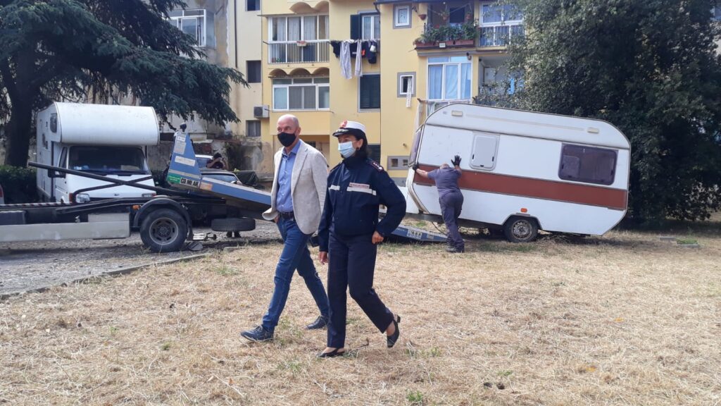 La polizia municipale ha provveduto a rimuovere una roulotte vandalizzata e abbandonata da anni nel prato dell’area condominiale di Casalp oggetto dei lavori di decoro. Un operatore ambientale di Aamps ha distribuito ai residenti una shopper in tessuto contenente materiale informativo relativo al corretto conferimento dei rifiuti. I residenti, che avevano richiesto un intervento, anche in seguito ai tragici fatti di cronaca nera della scorsa settimana, hanno apprezzato il lavoro svolto dagli uffici comunali e da Aamps e la presenza della Polizia Municipale e di Casalp.