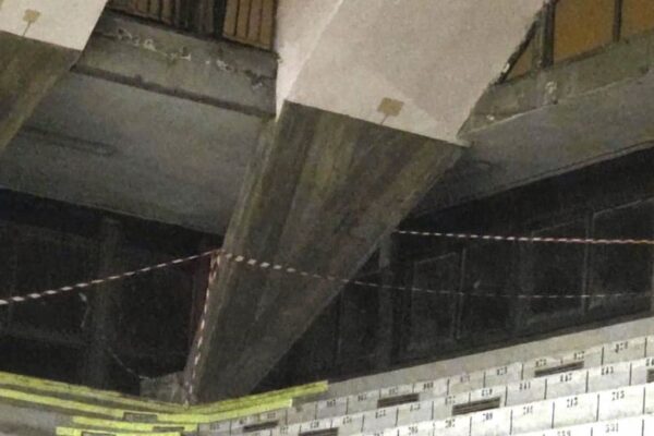 Mancava poco per non far partire la festa al PalaMacchia domenica 25 gennaio. A poco meno di due ore dall’inizio del match tra Pielle e Jesi, infatti, i vigili del fuoco ravvisano dei piccoli ma significativi crolli dal soffitto nel settore della curva sud proprio in prossimità delle porte finestre che danno sulle scalinate che portano all’esterno. Momenti di incertezza poi la decisione di apporre dei nastri bianchi e rossi delimitando così la “no pass zone” per evitare che qualcuno potesse rimanere ferito da alcuni crolli di calcinacci e il via libera da parte dei vigili del fuoco per far entrare tifosi e far iniziare lo spettacolo sportivo domenicale.