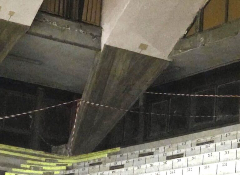 A poche ore da Pielle-Jesi l’intervento dei vigili del fuoco per alcuni crolli dal soffitto impone la chiusura di una zona dell’impianto. Nessun ferito e gara regolare, ma la struttura mostra tutti i segni del tempo: servono interventi rapidi in vista del ritorno in via Allende in programma il 15 febbraio per il big match contro la Virtus Roma