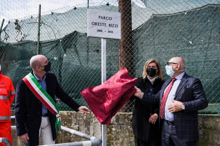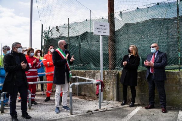 Quando il delicato drappo rosso che copre l’insegna viene tolto, l’applauso sentito nasce spontaneo. Il momento è toccante: una scritta nera su un marmo striato è impressa a imperitura memoria all’ingresso degli spazi verdi.