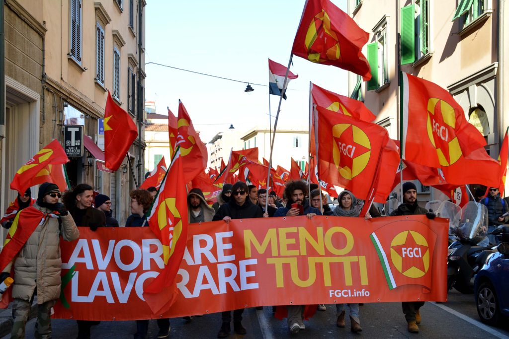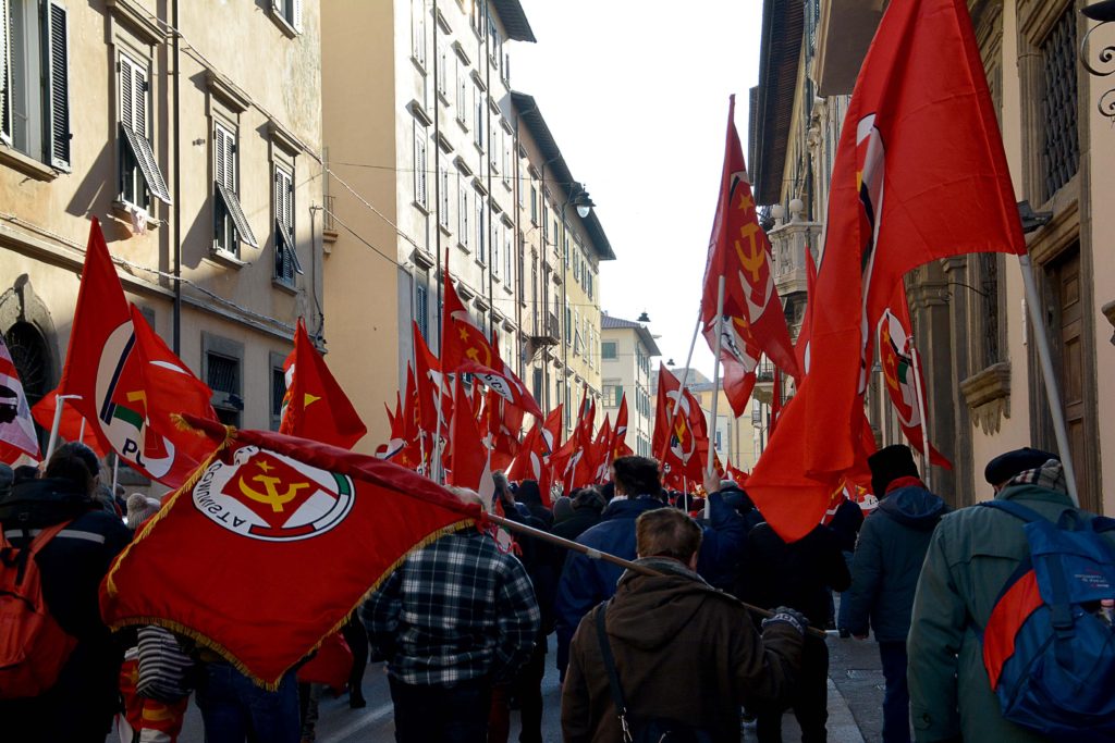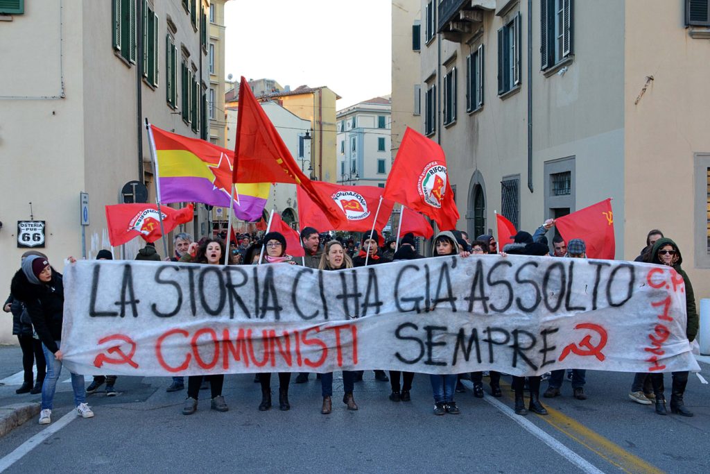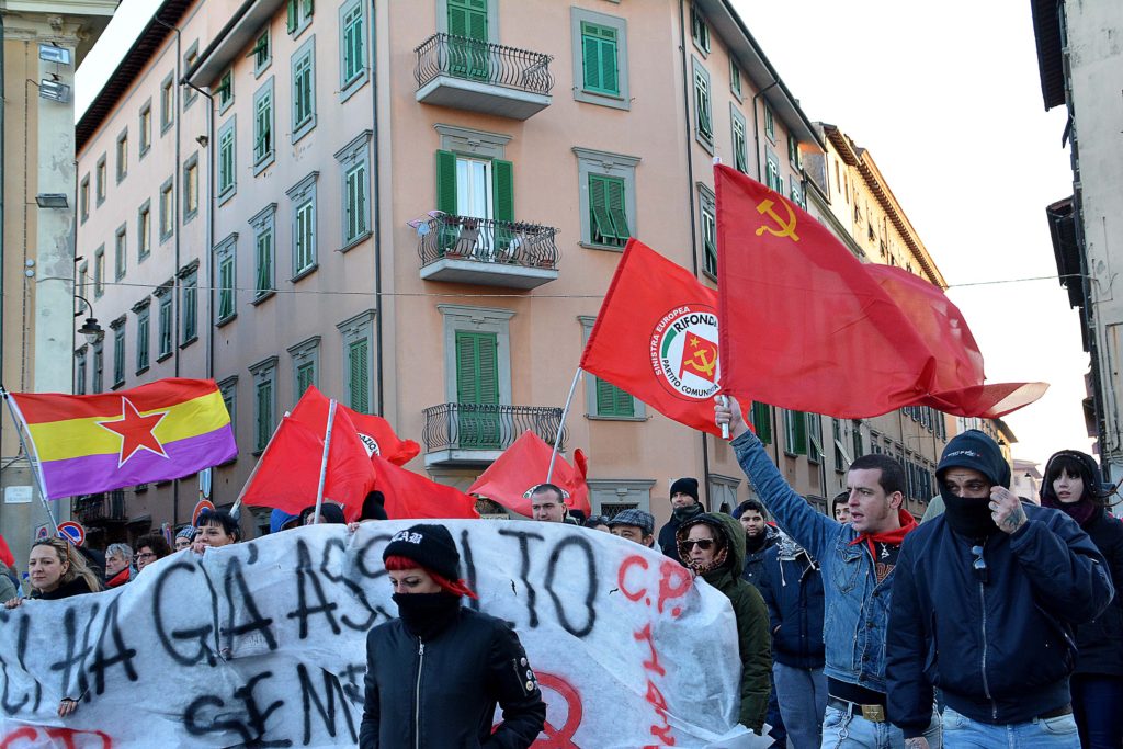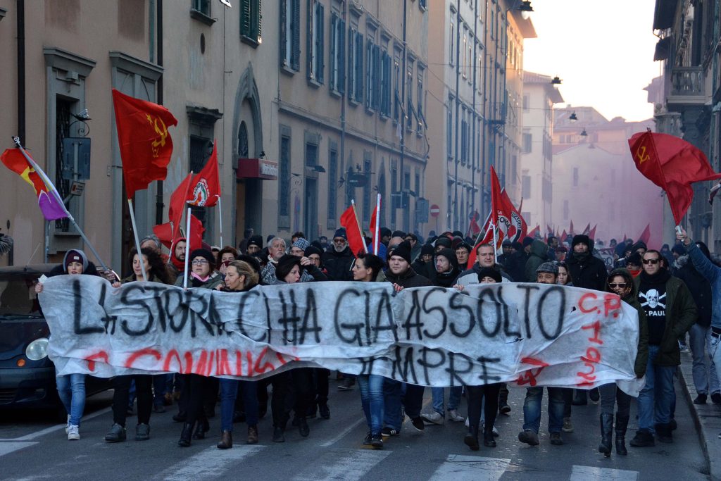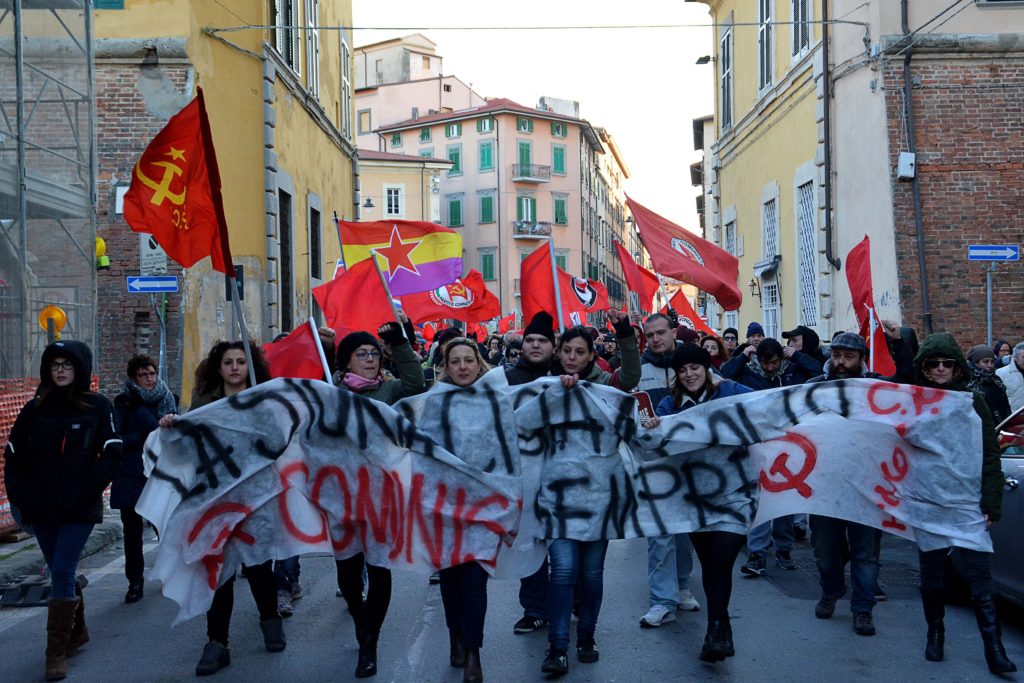 Ha sfilato nel pomeriggio del 21 gennaio il tradizionale corteo, organizzato dal Partito Comunista, per celebrare il 96esimo anniversario della nascita del Pci (foto Lanari). Alcune centinaia di persone si sono ritrovate al Teatro San Marco, in Venezia, per poi raggiungere piazza Attias. Un altro corteo, formato in prevalenza da Antagonisti, si è mosso invece dal Goldoni al Teatro San Marco. Tutto, anche grazie all’impegno della municipale nella gestione della viabilità, si è svolto in maniera ordinata.