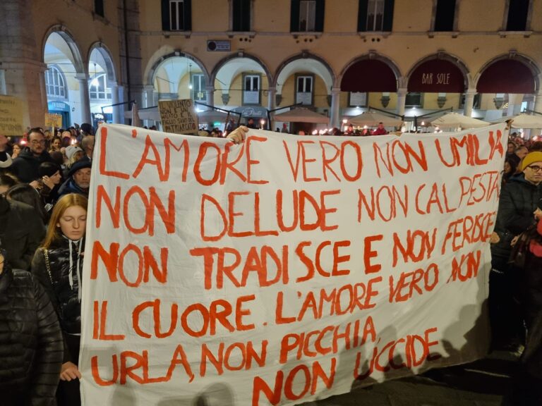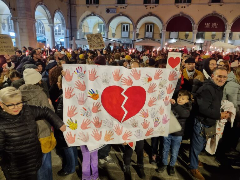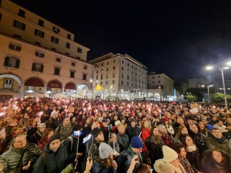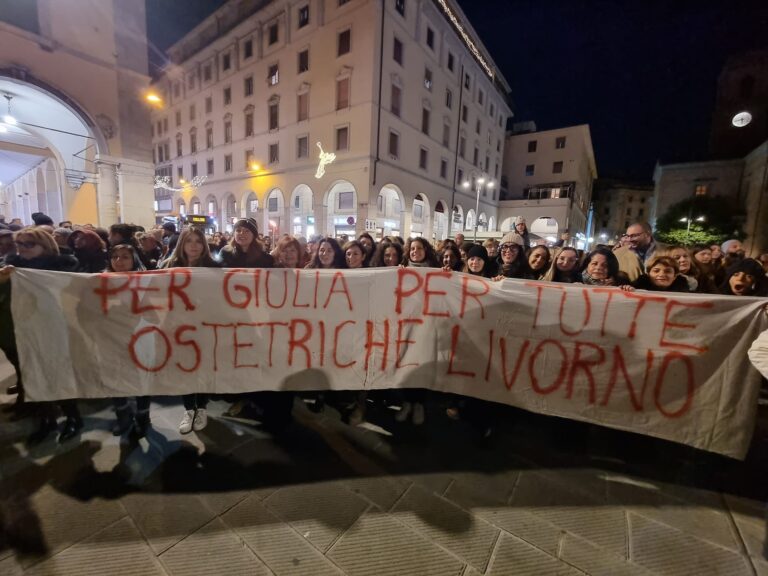 “Questa è la Livorno che ci piace. Sono orgoglioso di esserne il sindaco”. In migliaia – almeno duemila e tanti, tantissimi anche i bambini con genitori e insegnanti – in piazza Grande per la fiaccolata rumorosa per “Giulia e per tutte” nel giorno della Giornata per l’eliminazione della violenza contro le donne. Dal palco, alla presenza del sindaco, gli interventi della vice sindaca e di alcune donne. Tra le varie letture la poesia “Se domani non torno” di Caceres e i nomi delle 106 vittime di femminicidio nel 2023. Tra i presenti anche le ostetriche di Livorno con lo striscione “Per Giulia per tutte. Ostetriche Livorno”. Al termine delle letture tanti applausi e cori. Mescolati tra la folla gli assessori Simoncini, Cepparello e Garufo e il consigliere regionale Gazzetti. Infine, in piazza è stata esposta anche l’opera realizzata dall’artista Vinciguerra che ha rivisitato l’immagine della Venere su scatole vuote facendole indossare la scarpetta rossa. La fiaccolata si è poi spostata in corteo verso via Cairoli “capitanato” dal gruppo ostetriche.