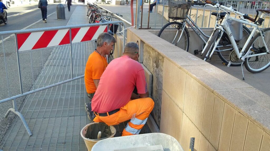 In particolare, nella mattina di venerdì 1° ottobre, sono state ripristinate le mattonelle che rivestono il muretto lungo il marciapiede. In precedenza erano state aggiustate le panchine “chaise longue”, che presentavano alcune doghe spezzate.