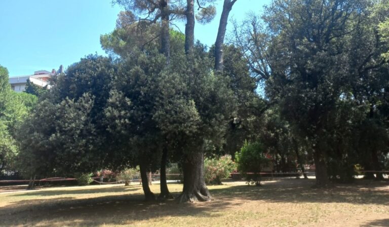 Pino pericolante in Villa Fabbricotti, evacuato e chiuso il parco