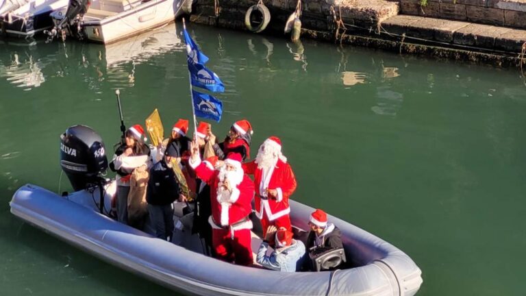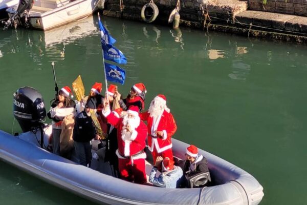 Il pranzo si è concluso con l’arrivo di Babbo Natale il quale, in un clima di festa gioiosa, è arrivato al Mercato Centrale a bordo di un gommone pieno di regali e cappelli rossi, messi a disposizione dalla società Assonautica, suscitando lo stupore delle persone presenti sulle spallette degli Scali Saffi, distribuendo regali ai bambini, a tutti gli ospiti e a tutti i volontari intervenuti per la realizzazione del Pranzo.