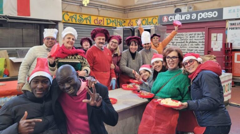Ventuno i paesi e le lingue d’origine, dai 90 anni ai 9 mesi, vecchi e nuovi livornesi tutti alla stessa tavola. Un’ immagine simbolo della città. Un’ immagine che apre il cuore in tempi di guerra e violenza, all’indomani dell’apertura della porta santa che dà inizio al Giubileo voluto da Papa Francesco. “Ognuno di noi, in qualsiasi luogo, è costruttore di pace”, dice Luca Gentini della Comunità di Sant’Egidio: “Il messaggio di questo Natale è che si deve ripartire mettendo la solidarietà al centro; in un momento in cui i conflitti sono presenti nelle città, dalle periferie come nei grandi scenari del mondo, bisogna che ci aiutiamo, insieme è possibile per tutti essere protagonisti di un cambiamento”.