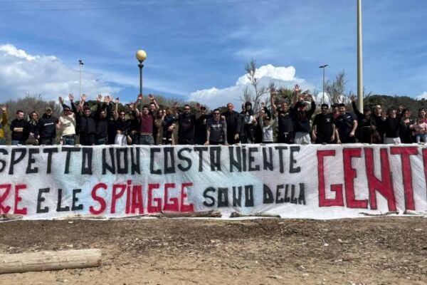 La foto di gruppo con lo striscione "Il rispetto non costa niente. Il mare e le spiagge sono della gente"