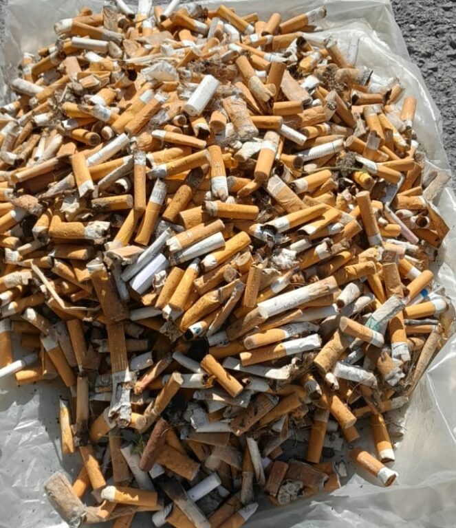 Quasi 1 kg di mozziconi raccolto in piazza Cavour