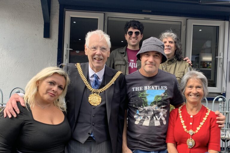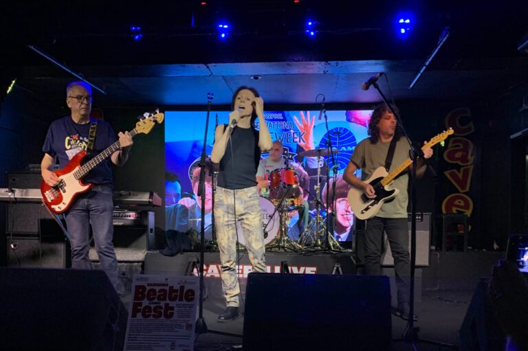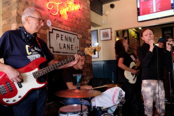 Se sessant’anni fa il leggendario gruppo capitanato da Lennon/McCartney, con la loro tournee in america confermava a livello mondiale la cosiddetta Beatlemania, in questi giorni quattro musicisti livornesi sono volati in aereo a Liverpool per omaggiare, con ben sei esibizioni, i Beatles. Il gruppo nostrano si chiama Got Back Again ed è composto da Piero Ciantelli (batteria), Massimo Nota (voce), Alessandro De Fusco (chitarra) e da Claudio Barontini (basso), noto fotografo che negli anni 70′, con oltre 500 concerti, ha suonato nella band che accompagnava la cantante Milva. In questi quattro giorni il gruppo “capitanato” da Piero Ciantelli (organizzatore, insieme a Vanessa Barbato, anche del Food Rock) ha suonato, riscuotendo grande successo, nei famosi luoghi e pub vissuti dai Beatles. A Penny Lane, in una sorta di “street concert” dove la voce di Nota e l’energia della chitarra di De Fusco ha entusiasmato il pubblico. Ad accogliere la band anche il sindaco di Liverpool Mr Roy Gladden e consorte. Al parco di Stramberry Fields, tanto caro a John Lennon hanno suonato per circa un’ora per poi spostarsi nel famoso “LIPA”, Institute for Performing Arts, l’istituto di istruzione superiore per le arti dello spettacolo di Liverpool, fondato da Paul McCartney. In questa cattedrale della musica i “Got Back Again” sono saliti sul palco dell’auditorium dedicato a George Harrison dopo l’esibizione di “Rolando Giambelli and Friends”. Ma la tappa fondamentale del viaggio a Liverpool è stato il mitico Cavern Club il locale dove i Fab Four si sono esibiti ben 292 volte e dove i quattro livornesi hanno suonato due volte.