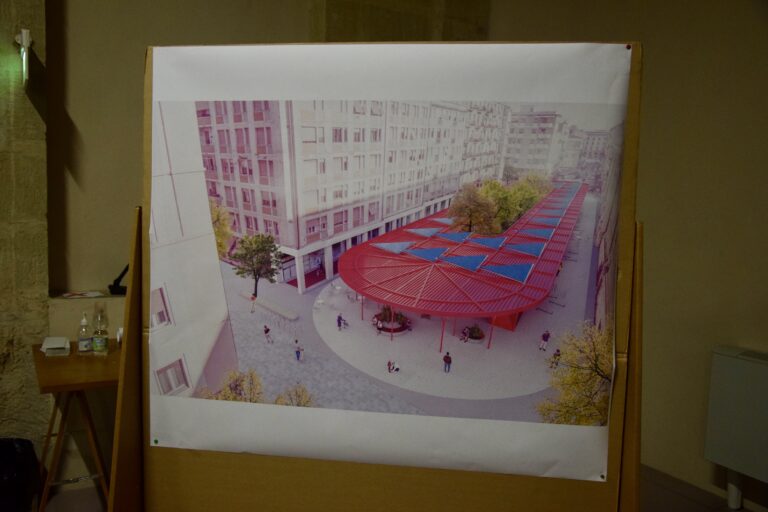 L’architetto Antonio De Paola in rappresentanza del gruppo vincitore: “Abbiamo approcciato il bando sapendo di voler rispondere alle richieste ma anche di voler introdurre la nostra idea rispetto al momento che viviamo. Quindi abbiamo inserito temi ambientali, progettuali, rispondendo alle necessità. Per prima cosa ci siamo occupati della superficie, abbiamo circoscritto l’area e l’abbiamo pavimentata con un materiale identificato ma che sarà oggetto di ulteriori studi, ad ogni modo sarà livellata ed accessibile a tutti. Si uniscono 4 giardini nelle aree principali. Ogni giardino è l’occasione per inserire un’architettura e restituire uno spazio dignitoso ai lavoratori ma anche alla città. Poi ci sono le coperture che proteggono e possono essere utilizzate anche per altri scopi. Le strutture sono moduli strutturali ripetuti e questo facilita le operazioni di montaggio e smontaggio dell’opera. Delle costruzioni alte per relazionarsi con l’imponente Mercato e dotate di caratteristiche che ripercorrono la storia della città. Le tettoie saranno in grado di raccogliere l’acqua e di immagazzinarla in delle cisterne utili per innaffiare i giardini e mantenere in attivo l’area mercatale.