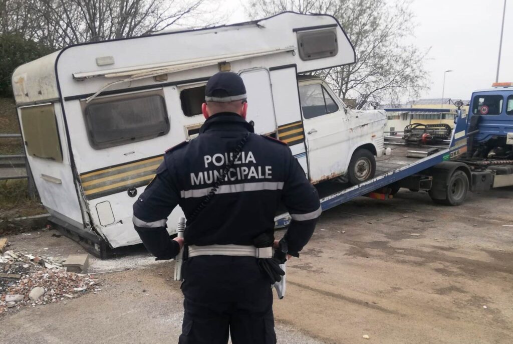 Sono state rimosse poi una roulotte abbandonata in via Don Albertario ed una nel parcheggio di viale della Libertà presumibilmente utilizzate di notte per attività illecite.