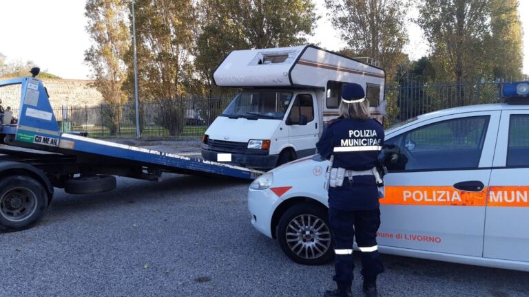 A seguito di esposti dei cittadini, sono stati rimossi 19 veicoli privi di copertura assicurativa, in stato di abbandono sulla pubblica via ma non qualificabili come rifiuti: un camper e un’automobile in via Minghi, sette auto nel parcheggio di viale della Libertà, tre ciclomotori in via De Larderel, quattro autovetture tra viale Carducci e la stazione, un camper in largo Borrani, un’autovettura a Quercianella e una in via Pigli.