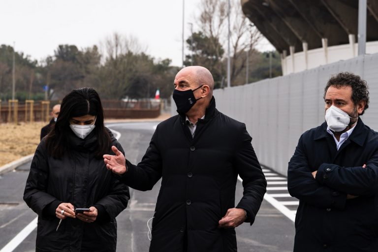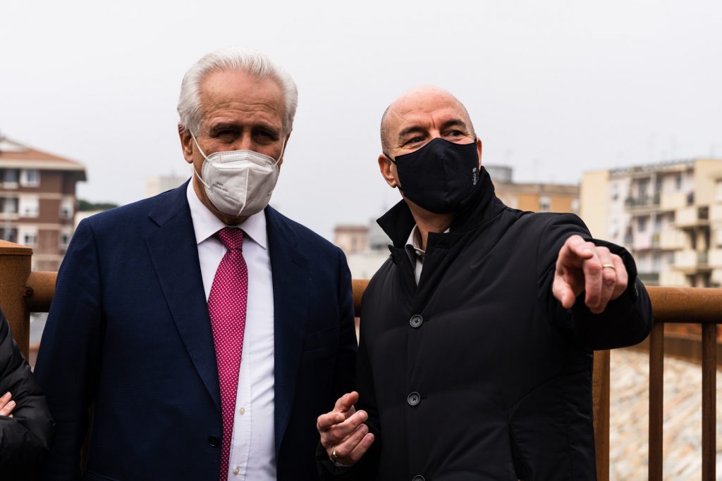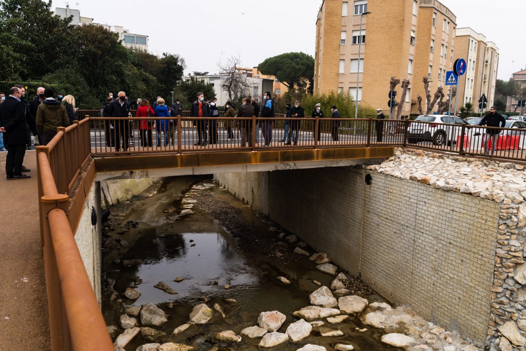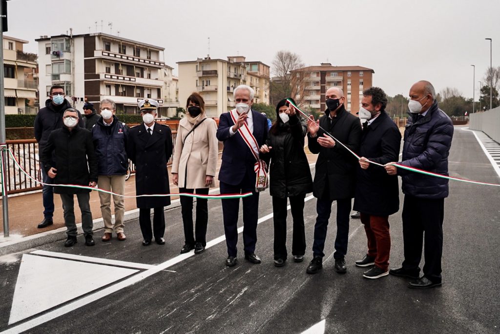 Il presidente della Regione Toscana Eugenio Giani e l’assessora regionale ai lavori pubblici, difesa del suolo e Protezione civile Monia Monni, accompagnati dal sindaco Luca Salvetti e dal consigliere regionale Francesco Gazzetti, hanno inaugurato a Livorno il 25 febbraio il primo lotto dei lavori di messa in sicurezza del Rio Maggiore, effettuati dalla impresa edile Nikante Costruzioni Srl di Campobasso (foto Amore Bianco). I lavori – iniziati il 13 gennaio dello scorso anno e conclusi con tre mesi di anticipo rispetto al cronoprogramma (dovevano infatti terminare il 17 maggio prossimo) – consistono nello stombamento del torrente e nell’ampliamento della sua sezione, così da renderlo in grado di far defluire senza problemi una massa d’acqua pari a quella caduta nel corso del disastroso evento alluvionale che si verificò nel settembre 2017. E’ la prima volta che ciò avviene, per dimensioni e lunghezza dell’intervento, in Toscana. In particolare il primo lotto esecutivo ha riguardato l’adeguamento del tratto da via Rodocanacchi a via dei Pensieri, in zona stadio, con la demolizione del tombamento e l’ampliamento della sezione idraulica, che è stata più che raddoppiata, in modo da garantire appunto, oltre al livello di sicurezza standard, anche il contenimento di un evento analogo a quello del 2017. Sono stati quindi realizzati due nuovi ponti, sulle vie Rodocanacchi e dei Pensieri. Nella progettazione e nell’esecuzione dei lavori si è dedicata particolare cura alle finiture, così da della riqualificare la zona, con l’inserimento di aree verdi che rendono il corso d’acqua più fruibile da parte della cittadinanza.