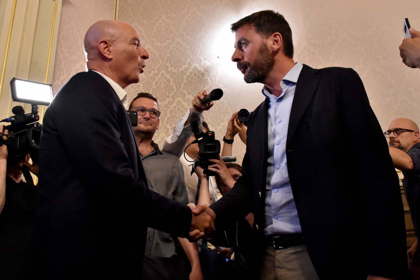 Andrea Romiti arriva in Comune intorno alle una di notte. La stretta di mano a Salvetti e le prime parole da sconfitto: "Contenti per aver ricompattato il centrodestra. L'elettorato è cresciuto. Bella Ciao? Dimostrazione di un voto ideologico"