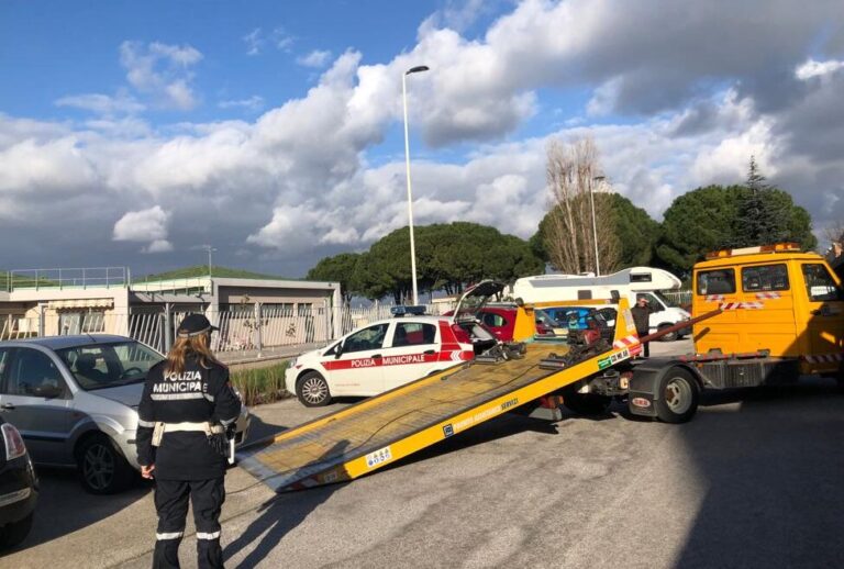 Ricognizione di veicoli fuori uso in parcheggi condominiali in zona Scopaia e Sorgenti. Sono stati sanzionati 16 proprietari di rottami in via Inghilterra e sei in via Modigliani per non aver smaltito correttamente il proprio veicolo fuori uso