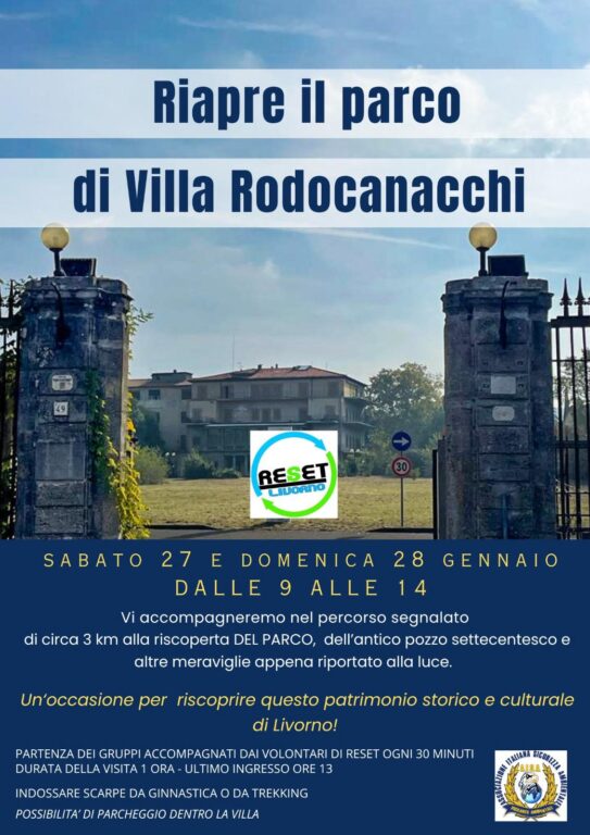 Sabato 27 e domenica 28 gennaio doppia apertura, dalle 9 alle 14 (ultimo ingresso alle 13, partenze ogni 30 minuti), del parco di Villa Rodocanacchi. Per la prima volta dalla riapertura, avvenuta domenica 15 ottobre 2023, il giro del parco sarà completo: “Potremo ammirare – spiega il presidente di Reset, Giuseppe Pera – questo splendido parco a Monterotondo nella sua interezza: dal pozzo settecentesco al mulino, dal laghetto all’isolotto, passando per le voliere e la casa termale. Un lungo lavoro di pulizia ci ha permesso di riportare alla luce tutte queste meraviglie che i nostri volontari vi accompagneranno a visitare in un percorso di circa 3 km”. Non occorre la prenotazione. Ingresso gratuito.