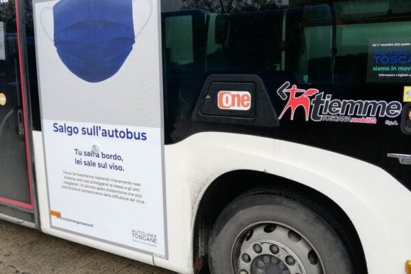 Prosegue anche la campagna di controlli a campione sul Green Pass con i 100 operatori alle fermate di tutta la Toscana. Su ogni autobus è presente l’avviso dell’obbligo della mascherina a bordo