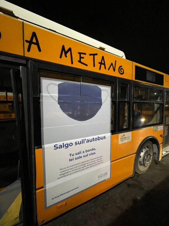 La campagna è stata sviluppata dall’Ufficio marketing, brand & comunicazione di Autolinee Toscane. Prosegue anche la campagna di controlli a campione sul Green Pass con i 100 operatori alle fermate di tutta la Toscana. Su ogni autobus è presente l’avviso dell’obbligo della mascherina a bordo.