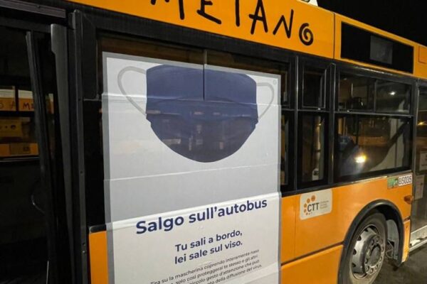 Quando sali in autobus, fai “salire” anche la mascherina. Un gesto di rispetto per gli altri (e per sé stessi) ancora più importante in questa fase critica della pandemia, con la risalita dei contagi del Covid.