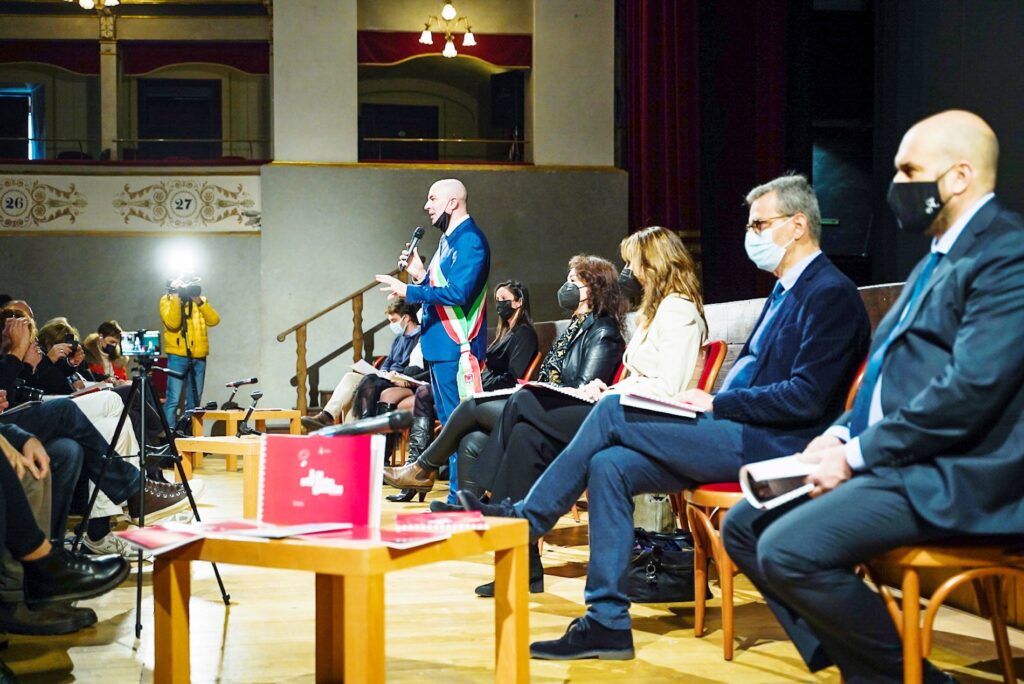 Terza conferenza stampa di fine anno il 23 dicembre per il sindaco Luca Salvetti (nella foto di Lorenzo Amore Bianco) e la sua giunta, che quest’anno, come per il 2020, si è tenuta eccezionalmente al Teatro Goldoni (clicca qui per rivedere la DIRETTA FB).