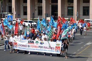 Oltre duemila persone in piazza per lo sciopero generale a Livorno, la mobilitazione indetta da Cgil, Cisl e Uil per chiedere dignità, reddito e lavoro. È partito da piazza Magenta il coloratissimo corteo delle lavoratrici e dei lavoratori dell’area di crisi livornese, che comprende un territorio da Collesalvetti alla bassa Val di Cecina. Ad aprile il corteo lo striscione a cui era affidato il messaggio dell’iniziativa “Livorno si ferma per rialzarsi”. Dopo Piombino, a distanza di 4 anni, è la città di Livorno che si ferma: un fiume di persone in festa ha attraversato tutto il centro storico della città per chiedere l’unità di tutto il territorio al fine di risollevare l’occupazione dopo la forte crisi che si è abbattuta sulla provincia. Dal palco allestito in piazza del Comune sono intervenuti i tre segretari nazionali dei sindacati confederali: Franco Martini della Cgil, Gigi Petteni della Cisl e Guglielmo Loy della Uil. “Dico alle lavoratrici e ai lavoratori che il sacrificio di questo sciopero non è e non sarà inutile – ha detto dal palco Guglielmo Loy, segretario nazionale Uil – La politica, nonostante gli annunci di chi troppo in fretta ci vorrebbe fuori dalla crisi, si sta accorgendo del disagio che esprimiamo, oggi a Livorno ma ogni giorno in tutto il Paese”. “Livorno, la Toscana, tutto il Paese hanno bisogno di un rilancio – ha sottolineato Petteni – che deve partire proprio dagli elementi contenuti nella piattaforma di questo sciopero: sostegno al reddito, lavoro, dignità, investimenti nelle infrastrutture e nelle attività produttive”. Franco Martini, responsabile della contrattazione della segreteria nazionale Cgil, ha concluso la manifestazione con l’impegno che i sindacati confederali porteranno a Roma le ragioni di Livorno “Oggi da Livorno partono 3 telegrammi – ha tuonato dal palco – uno per il Governo che deve tornare a dialogare con il mondo del lavoro, uno alle Istituzioni Locali che non devono avere paura di questa piazza, oggi siamo qui anche per loro, per la crescita dei territori che rappresentano, e agli imprenditori con la rivendicazione di rinnovare al più presto i contratti nazionali per un incremento dei salari”. I segretari confederali della provincia di Livorno, a fronte dell’adesione allo sciopero che ha toccato picchi oltre l’80%, hanno inviato una richiesta urgente d’incontro ai sindaci dell’area di crisi per arrivare con una proposta unica alla riunione della cabina di regia regionale dell’accordo di Programma di Livorno, prevista per il 14 luglio.