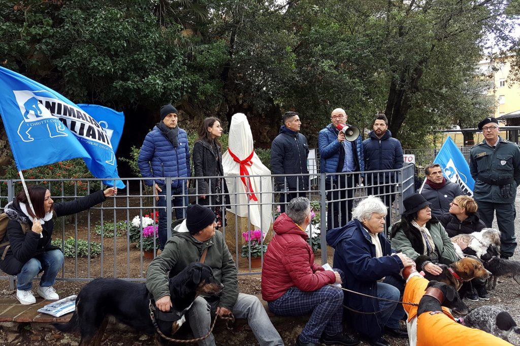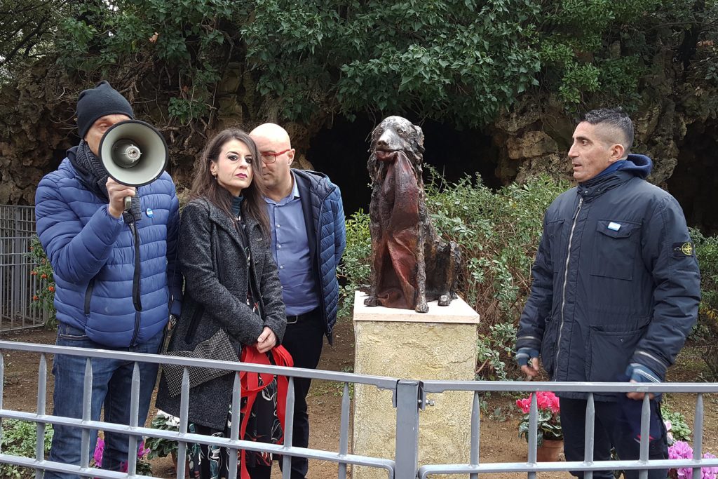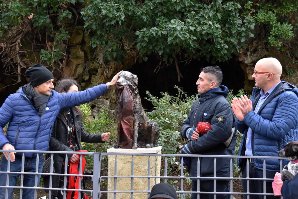La statua del cane ucciso a Livorno da un colpo di carabina mentre era sul suo terrazzo è stata scoperta in Villa Fabbricotti alla presenza di associazioni animaliste e autorità