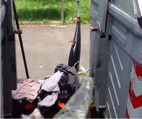 Torniamo indietro passando da via Saffi, lato mercato centrale, ed in direzione via Cairoli: scatole di cartone a parte, la situazione sembrerebbe abbastanza stabile con i cassonetti di via Serristori, via del Tempio e via Cassuto, (che però presenta il “bidone della carta” divelto e rovinato) che appaiono puliti ed in ordine mentre quelli all’incrocio con via di Franco purtroppo sono accompagnati da qualche lastra di compensato grande circa 50×30 cm. Andiamo avanti ci imbattiamo in via San Francesco dove delle lenzuola avvolgono parte del marciapiede. Proseguendo verso gli Scali d’Azeglio, adiacenti alla chiesa di San Sebastiano, due sedie rotte ci augurano buon lavoro (si fa per dire) mentre all’incrocio con via delle Commedie, oggetti non bene identificati sono appoggiati ai piedi del cassonetto dell’organico e in largo Fratelli Rosselli, davanti alla Carta abbiamo trovato macerie ed un water closet. Lo “spazza-tour” continua e, mentre in via San Giovanni regna la pulizia, in via Fiume troviamo un pancale di legno lato via Vittorio Veneto che però non supera, in quanto a rifiuto ingombrante, quello che troviamo tra via Fiume e via Montegrappa dove un aspirapolvere, contornato da tessuti ed altri oggetti, spicca tra tutti.