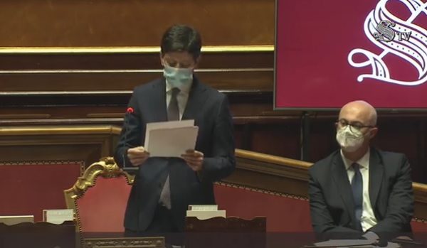 “Per me la bussola nella scrittura del nuovo Dpcm, che sarà in vigore dal 6 marzo al 6 aprile, deve essere la tutela della salvaguardia della salute. Non dobbiamo avere esitazioni su questo punto”. Lo ha dichiarato il ministro della Salute Roberto Speranza nelle comunicazioni al Senato nel pomeriggio del 24 febbraio (rivedi su Senato Tv, foto tratta da Senato Tv). Nel nuovo Dpcm rientreranno, quindi, anche Pasqua e Pasquetta. “Solo il comune lavoro di tutte le istituzioni può portarci a vincere le sfide che abbiamo davanti. Analizzando con serietà la curva del contagio e stando alle valutazioni della cabina di regia allo stato di cose è fondamentale mantenere un approccio di grande prudenza. L’Rt media calcolato sui casi sintomatici è pari a 0.99 nell’ultimo rilevamento, in crescita rispetto alla settimana precedente e fuori dai tecnicismi l’Rt si avvia a superare la soglia di 1. Le misure restrittive sono indispensabili, non vi è altra strada, anche se siamo consapevoli che comportino sacrifici. Per questo c’è tutto l’impegno a promuovere congrui ristori per le attività che stanno pagando a caro prezzo le ordinanze. Ordinanze settimanali che d’ora in avanti andranno in vigore da lunedì“.