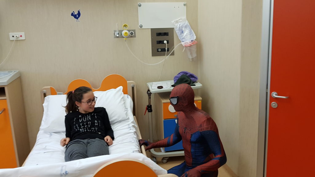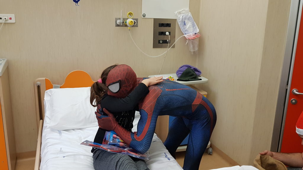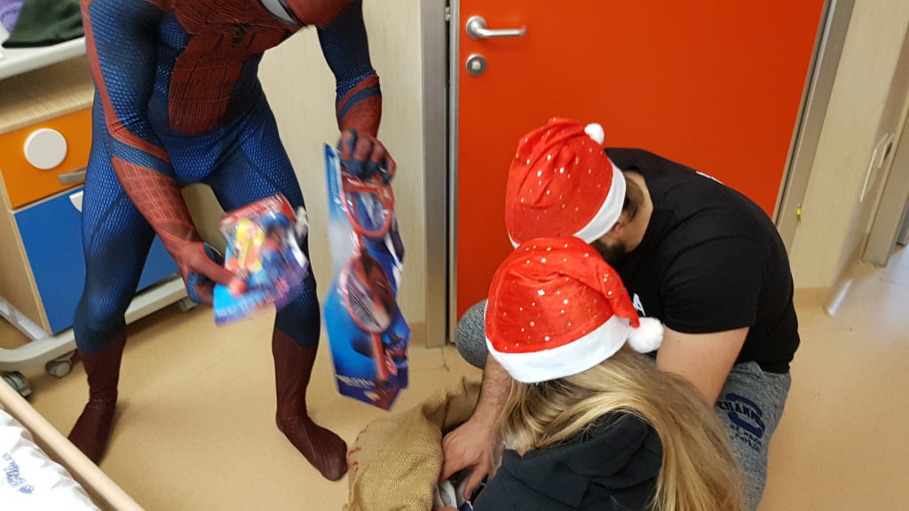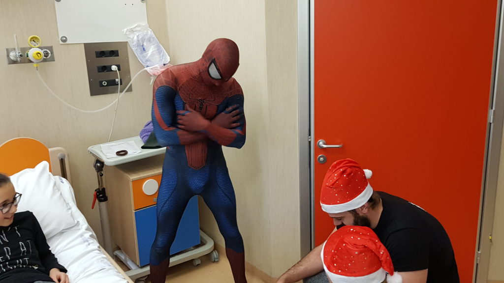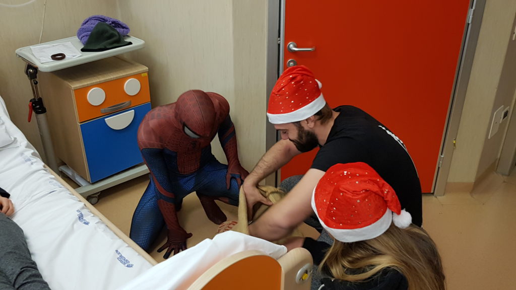 Questo che abbiamo descritto come quello che potrebbe essere un sogno per tanti piccoli pazienti costretti a passare questi giorni di festa all’interno dell’ospedale, è accaduto davvero lunedì 24 dicembre quando, intorno alle 12 Michele Silvestri del Ninja Cave-Zen Club di via Pera, insieme a tutti i suoi aiutanti tra cui lo storico Maurizio Silvestri e i più giovani Francesca Godani, Alice Mainardi, Stefania Cuozzo, Luca Muscas, Rachele Giovannini e alla presidentessa dello stesso Zen Club, Barbara Bassotti, ha deciso di realizzare i sogni di tanti bambini trasformandosi per un’ora in uno dei supereroi preferiti dai più giovani (e non solo): Spider-Man.