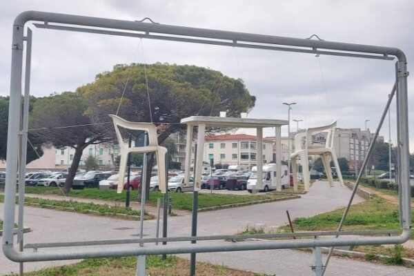 Allora, prima di tutto l’appello: invitiamo l’autore a farsi avanti scrivendo a [email protected]. Poi… Stavamo transitando in scooter in via della Libertà intorno a mezzogiorno del 27 gennaio quando la nostra attenzione è stata catturata da questa installazione artistica (?) sospesa. O meglio, avvicinandoci abbiamo poi notato che le due sedie e il tavolo sono sorretti da fili agganciati a quella che è la sagoma di un cartellone pubblicitario. E ad uno sguardo ancora più attento ecco che sopra al tavolino sono stati posizionati due bicchieri. Tutto è perfettamente in linea, in bolla. Ora, la domanda è: chi ha realizzato tutto ciò e a quale scopo? Abbiamo intanto chiesto al Comune se sia stato informato di questa installazione spontanea.