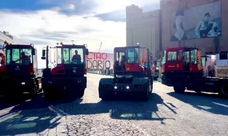 Uno striscione con scritto Ciao Dario e il “saluto” di quattro ralle. È l’iniziativa promossa da Simone, dipendente Uniport, che ringraziamo per la disponibilità, insieme ad altri colleghi di Uniport, per ricordare l’amico e collega Dario, dipendente di ALP, scomparso ieri all’età di 39 anni. L’iniziativa si è svolta ieri pomeriggio alle 18.30 al Varco Fortezza. Dopo aver posizionato le quattro ralle, una accanto all’altra, è stato suonato il clacson per un minuto circa. Sempre ieri pomeriggio il presidente di ALP Jary De Filicaia, a nome di tutto il cda, aveva espresso condoglianze ai familiari di Dario. “Ci stringiamo anche noi al dolore dei familiari” conclude Simone.