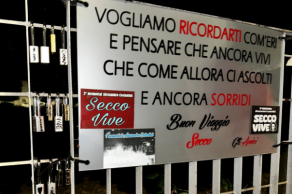 In memoria di Alessandro "Secco" Costantini, gli amici hanno poi voluto lasciare un lucchetto con una frase in viale Risorgimento dove il 13 agosto 2018 è avvenuto l'incidente