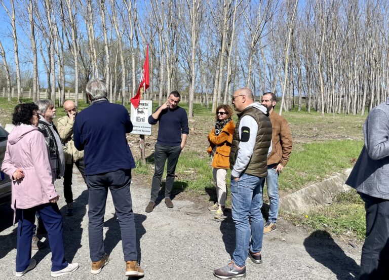 L’area verde adiacente alla raffineria di Stagno, in prossimità del cavalcavia e di proprietà Eni, ha visto di recente il taglio di ben 100 pioppi. Un avvenimento che non ha lasciato indifferenti gli esponenti di La sinistra di Collesalvetti che, nella mattina di sabato 1° aprile, hanno organizzato una conferenza stampa nei pressi della zona, in collaborazione con Cittadini in Comune per Collesalvetti (Cic), per illustrare ai presenti le ragioni della propria contrarietà. “Questo spazio – spiega Luca Chiappe di La sinistra di Collesalvetti – è stato ideato negli anni ‘90 con due obiettivi precisi: riqualificare un’area vicino all’abitato, ovvero renderla più bella per chi la vede tutti i giorni, e creare un vero e proprio polmone verde che contrastasse i forti odori provenienti dalla raffineria”. Poi prosegue illustrando le recenti problematiche. “All’improvviso è stato deciso che queste piante erano malate e sono state tagliate: la relazione è uscita sulla base di una nostra richiesta e vorremmo sapere perché la data della relazione e quella del taglio, 19 dicembre 2022, coincidono. Di solito, prima si fa un sopralluogo, si verifica e poi eventualmente ci si organizza per tagliare”.