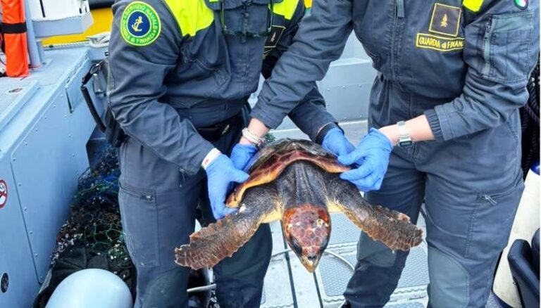 Nel primo pomeriggio di venerdì 27 febbraio, l’equipaggio della vedetta velocissima V.1311 della Stazione Navale di Livorno impegnato in attività di polizia del mare ha individuato una tartaruga marina della specie “Caretta Caretta” in evidente stato di difficoltà perché impigliata in un attrezzo da pesca illegale, nelle acque prospicenti Chioma.