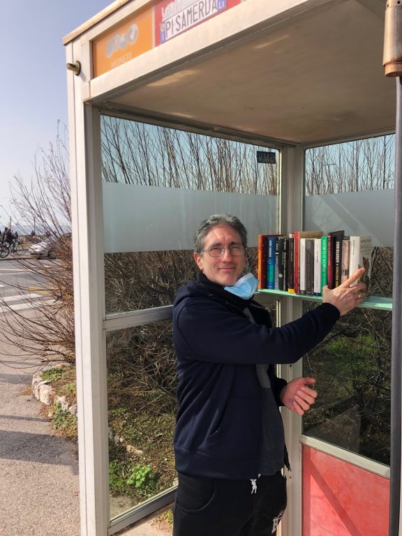 A lanciare “Telefonami un libro” sono Giovanni Neri, giornalista e scrittore, autore del giallo pulp “Capraia Akbar” e di “Diario di un cane felice”, Nino Bozzi, patron della casa editrice livornese Ctl e Michela Tanfoglio, fondatrice dell’agenzia letteraria torinese EditReal. Insieme hanno scelto una vecchia cabina del telefono, quella davanti alla Baracchina Bianca, per trasformarla in una piccola biblioteca a disposizione di tutti.