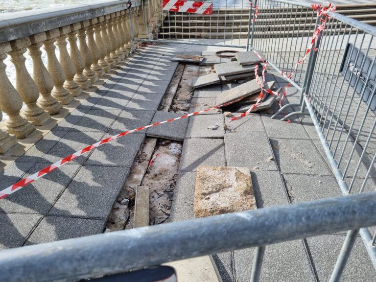 Dopo la riapertura di stamattina del viale Italia siamo andati a vedere come sta la Terrazza. Ed è una Terrazza ferita quella che ci siamo trovati di fronte. Ferita in almeno due punti della scacchiera, entrambi lato Palazzo Pancaldi. Salvetti: "I danneggiamenti sono stati già censiti e in somma urgenza si procederà all’intervento di sostituzione delle parti divelte e poi ad un ulteriore programma di manutenzione oltre quello già previsto annualmente"
