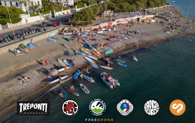 Le premesse sono state mantenute: un grande ritrovo di sup, circa 50, a 10 anni dalla prima edizione, si è dato appuntamento il 10 agosto alla spiaggia dei Tre Ponti. La scintilla è stata accesa dall’associazione Sons of the ocean per questa bella iniziativa e così al centro surf 3 Ponti, sede della Windsurf Livorno, si sono riunite varie realtà come Supernone, Planet Riders Ex Hoasy Livorno, F.I.S.A Federazione Italiana Salvamento acquatico, Baretto Tre Ponti e naturalmente Sons of the Ocean per dar vita ad una suggestiva sfilata di tavole. Il gruppo guidato dall’animatore delle suppate Federico Mantovani ha fatto visita ai Bagni Lido e Bagni Fiume per poi tornare alla spiaggia dei Tre Ponti dove uno splendido calasole allietava l’aperitivo gustato durante la proiezione di un fantastico filmato, Le onde che ci fanno sognare, sulla bellezza delle onde narrato e montato ad arte dal professor Alessio Rovere coadiuvato da un altro professore habitué della spiaggia Matteo Vacchi (entrambi esperti in biologia marina). La notte di San Lorenzo non poteva iniziare nella maniera migliore – scrivono Centro surf 3 Ponti, Sons of the Ocean, Supernone, Planet Raiders Ex Hoasy Livorno, Baretto Tre Ponti, F.I.S.A. – con tante persone unite da una passione comune a dimostrazione di quanta energia positiva la natura riesce a distribuire a tutti noi. Ciao e alla prossima edizione di Aperisup”.
