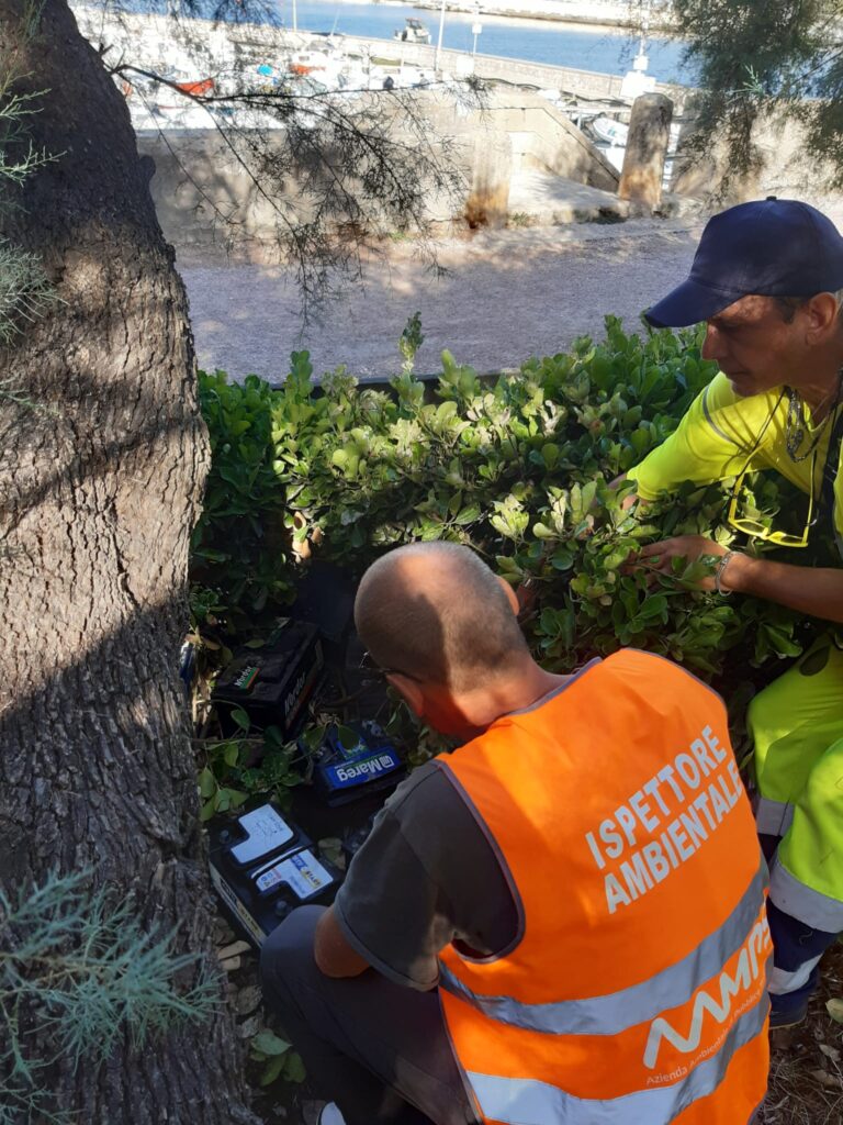 Trovate 8 batterie esauste abbandonate nelle aiuole davanti al moletto