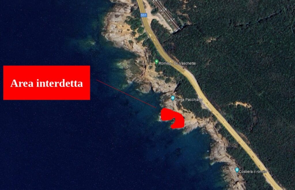 del tratto di mare circostante da parte della Capitaneria di Porto, l’Ufficio Demanio Marittimo del Comune ha deciso di “interdire in via cautelativa, il transito, la sosta e la permanenza a persone, cose, animali ed a mezzi non autorizzati, nell’area demaniale marittima Punta Pacchiano – Calafuria”.