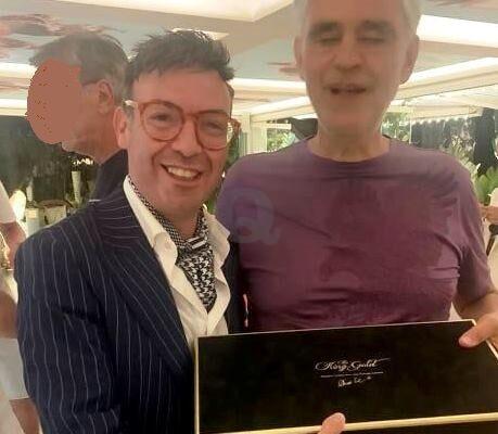 Valerio “The king of pasta” Chiesa dona i suoi “girasoli” in oro a Bocelli